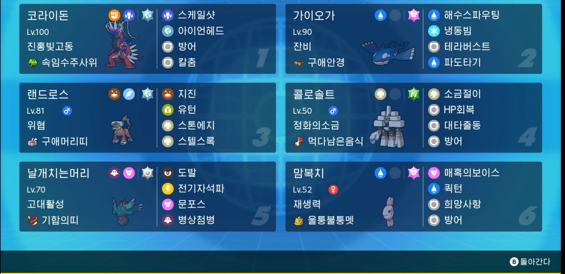 동시에 상대 코라이돈과 어느정도 싸움을 할 수 있게 hbc 계열의 가이오가로 완성하게 되었습니다.